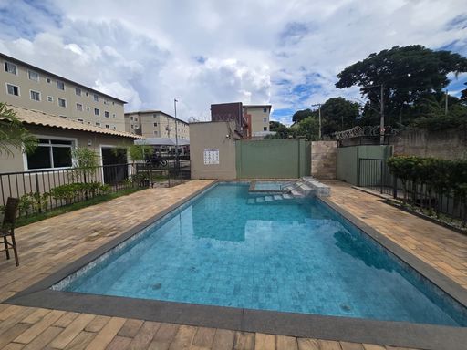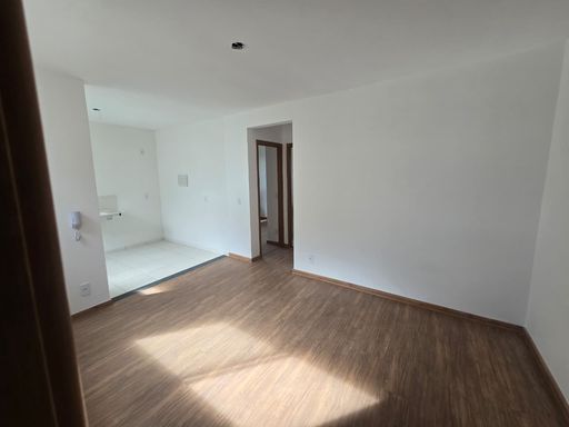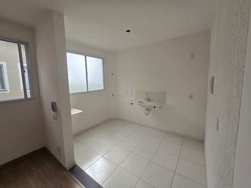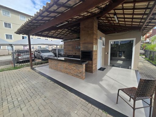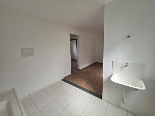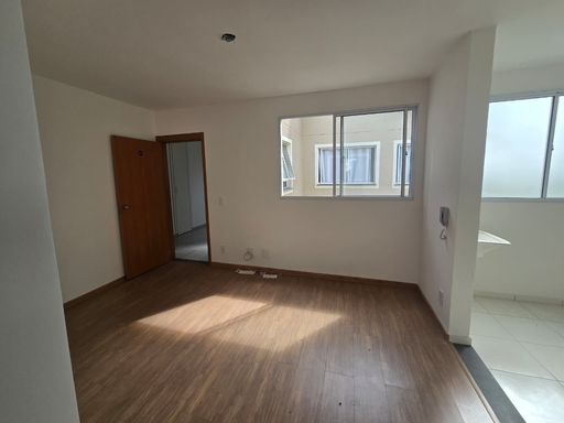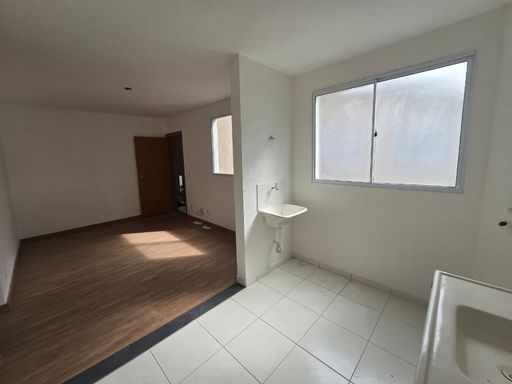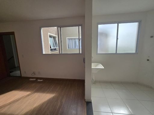 SALA AMPLA PARA 02 AMBIENTES COM PISO LAMINADO, 02 QUARTOS COM PISO LAMINADO, COZINHA EM CONCEITO ABERTO, ÁREA DE SERVIÇO, 01 VAGA DE GARAGEM COBERTA.
