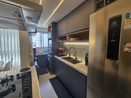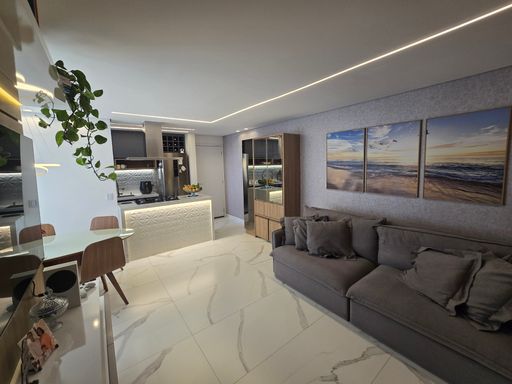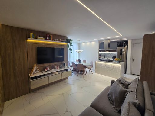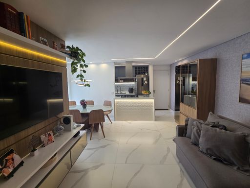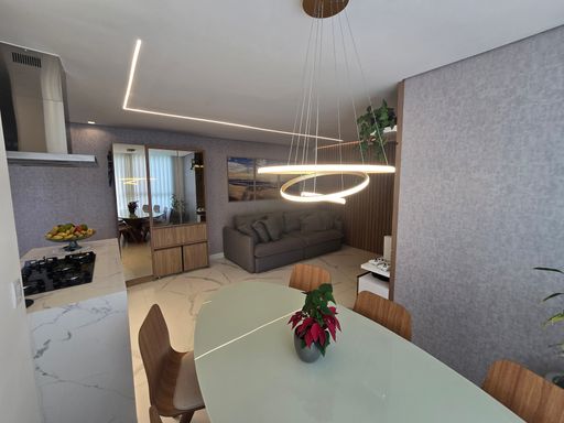 Este incrível imóvel de 76m², totalmente mobiliado, sala ampla para 02 ambientes com piso em porcelanato, cristaleira e painel de TV, conta com 03 quartos com armários planejados com piso laminado, sendo 01 suíte, bancada em granito box e armário planejado, banheiro social com bancada em granito, box e armário planejado, cozinha estilo americana com bancada e rica em armários planejado, área de serviço, ambientes bem distribuídos e 02 vagas de garagem — pronto para você entrar e morar imediatamente.