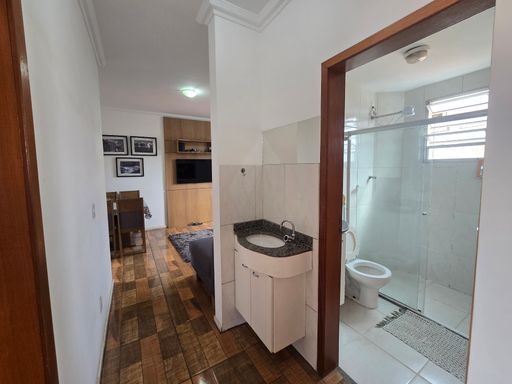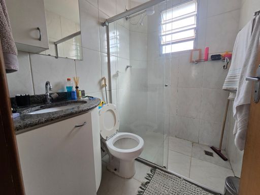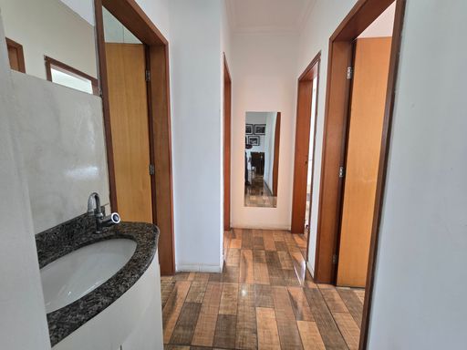 SALA AMPLA PARA 02 AMBIENTES COM PISO EM CERÂMICA, 03 QUARTOS COM PISO EM CERÂMICA, SENDO 01 COM ARMÁRIOS PLANEJADOS, LAVABO, BANHEIRO SOCIAL COM BOX, COZINHA COM BANCADA E FECHAMENTO, ÁRAE DE SERVIÇO SEPARADA, 01 VAGA DE GARAGEM