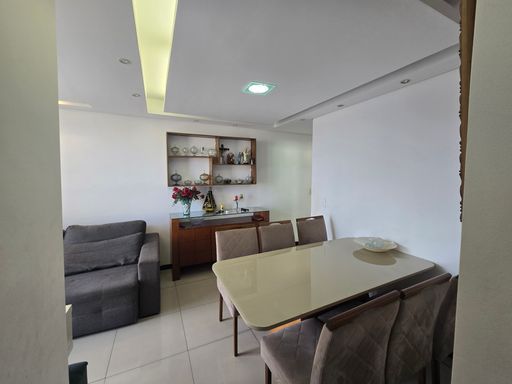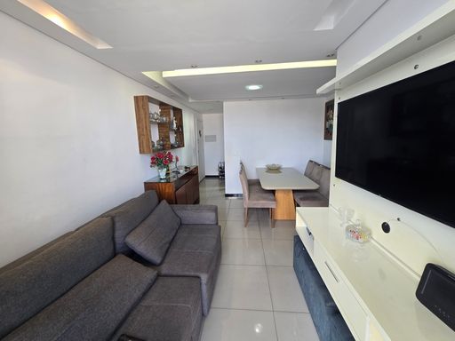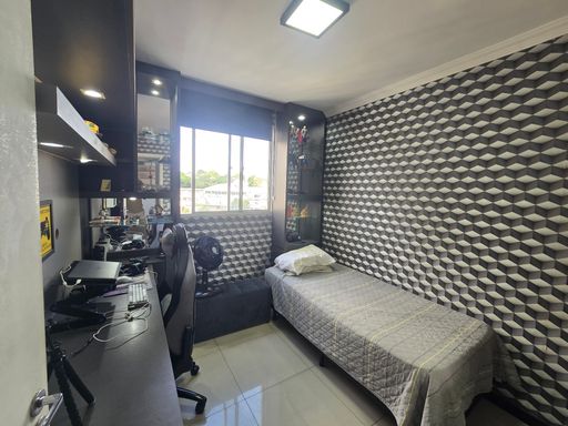 SALA AMPLA PARA 02 AMBIENTES COM PISO EM PORCELANATO, 03 QUARTOS COM PISO EM PORCELANATO E ARMÁRIOS PLANEJADOS, SENDO 01 SUÍTE, COM BANCADA EM GRANITO E BOX, BANHEIRO SOCIAL, BANCADA EM GRANITO E BOX, COZINHA COM BANCADA EM GRANITO E ARMÁRIOS PLANEJADOS, ÁREA DE SERVIÇO.