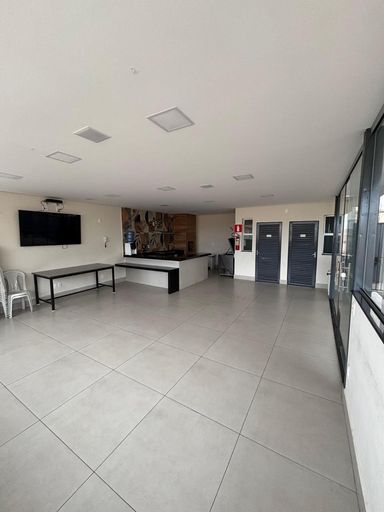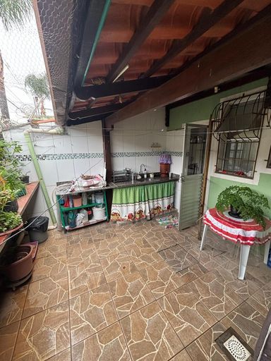 SALA COM PISO EM CERÂMICA, LAVABO REVESTIDO EM CERÂMICA, COZINHA COM BANCADA EM GRANITO E ARMÁRIO, ÁREA DE SERVIÇO SEPARADA E JARDIM, 01 VAGA DE GARAGEM