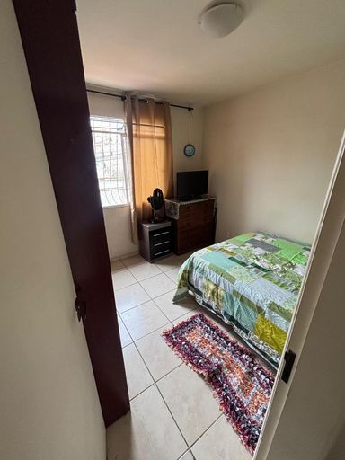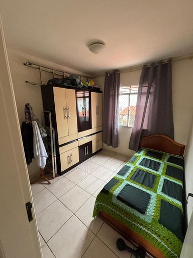 02 QUARTOS COM PISO EM CERÂMICA, 01 BANHEIRO SOCIAL REVESTIDO EM CERÂMICA E BOX.