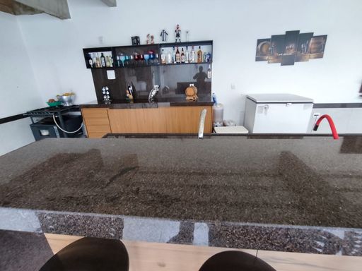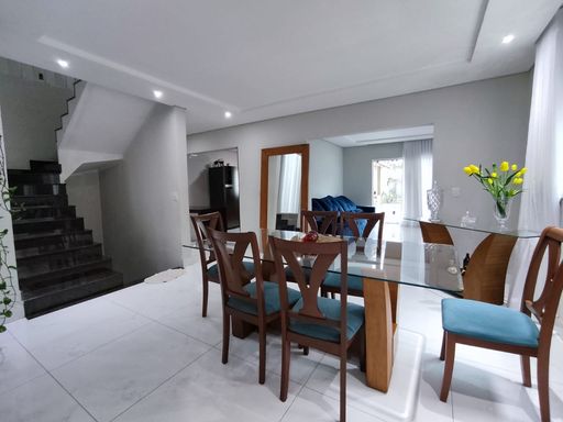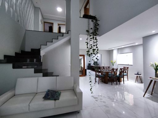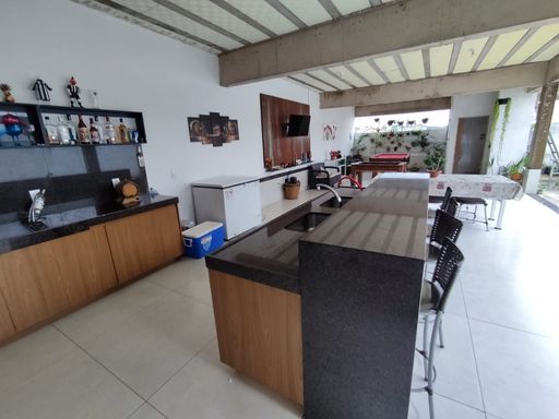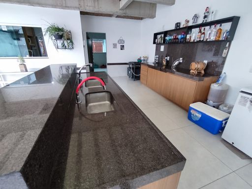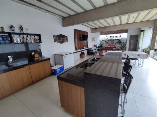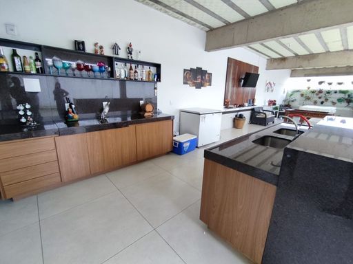 SALA AMPLA COM PISO EM PORCELANATO, 01 LAVABO TODO EM PORCELANATO, SALA DE JANTAR AMPLA EM CONCEITO ABERTO COM PISO EM PORCELANATO, SALA DE TV COM PISO EM CERÂMICA, COZINHA AMPLA COM PISO EM PORCELANATO, BANCADA EM GRANITO E ARMÁRIOS PLANEJADOS, ÁREA GOURMET COM ILHA, CHURRASQUEIRA COM BANCADA EM GRANITO, BANHEIRO NA ÁREA GOURMET.