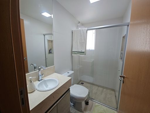 SALA AMPLA COM PISO EM PORCELANATO, 03 QUARTOS COM ARMÁRIOS PLANEJADOS, SENDO 01 SUÍTE COM BANCADA EM GRANITO E BOX, BANHEIRO SOCIAL COM BANCADA EM GRANITO E BOX, COZINHA COM ARMÁRIOS.