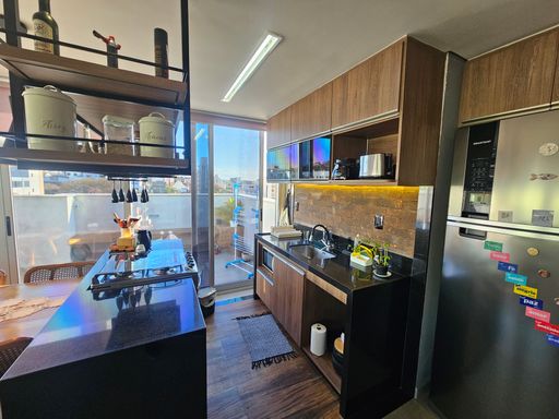 SALA AMPLA EM CONCEITO ABERTO, ÁREA GOURMET COMPLETA COM CHURRASQUEIRA A CARVÃO, ÁREA DE SERVIÇO SEPARADA, LAVABO COMPLETO, ÁREA DESCOBERTA.
